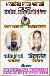 ) ਮਾਨਸਰੋਵਰ ਸਾਹਿਤਕ ਅਕਾਦਮੀ ਰਾਜਸਥਾਨ ਪੰਜਾਬੀ ਇਕਾਈ ਯੂਨਿਟ ਵੱਲੋਂ ਬੀਤੀ ਸ਼ਾਮ 5 ਵਜੇ “ਮਹਿਕਦੀ ਸ਼ਾਮ” ਆਨਲਾਈਨ ਲਾਈਵ ਪ੍ਰੋਗਰਾਮ ਕਰਵਾਇਆ ਗਿਆ।ਜਿਸ ਦੀ ਮੇਜ਼ਬਾਨੀ ਲੇਖਕ ਮਹਿੰਦਰ ਸੂਦ ਵਿਰਕ ਜੀ ਨੇ ਕੀਤੀ ਅਤੇ ਇਸ ਪ੍ਰੋਗਰਾਮ ਵਿੱਚ ਪੰਜਾਬੀ ਸ਼ਾਇਰ ਜਸਵਿੰਦਰ ਸਿੰਘ ਜੱਸੀ ਜੀ ਨੂੰ ਸਰੋਤਿਆਂ ਦੇ ਰੂ-ਬ-ਰੂ ਕਰਵਾਇਆ। “ਮਹਿਕਦੀ ਸ਼ਾਮ” ਪ੍ਰੋਗਰਾਮ ਨੂੰ ਸੂਦ ਵਿਰਕ ਜੀ ਨੇ ਸ਼ਾਨਦਾਰ ਅੰਦਾਜ਼ ਵਿੱਚ ਪੇਸ਼ ਕੀਤਾ ਅਤੇ ਸ਼ਾਇਰ ਜਸਵਿੰਦਰ ਸਿੰਘ ਜੱਸੀ ਜੀ ਨੇ ਆਪਣੀਆਂ ਗ਼ਜ਼ਲਾਂ ਅਤੇ ਕਵਿਤਾਵਾਂ ਨਾਲ ਸਰੋਤਿਆਂ ਦੇ ਮਨਾਂ ਨੂੰ ਮੋਹ ਲਿਆ। ਮਾਨਸਰੋਵਰ ਸਾਹਿਤਕ ਅਕਾਦਮੀ ਰਾਜਸਥਾਨ ਦੇ ਸੰਸਥਾਪਕ ਮਾਨ ਸਿੰਘ ਸੁਥਾਰ ਅਤੇ ਚੇਅਰਮੈਨ ਮੈਡਮ ਸੀਯਾ ਭਾਰਤੀ ਅਤੇ ਇਸ ਪ੍ਰੋਗਰਾਮ ਦੇ ਪ੍ਰਬੰਧਕ ਇਕਬਾਲ ਸਿੰਘ ਸਹੋਤਾ ਨੇ ਦੱਸਿਆ ਕਿ ਇਹ ਪ੍ਰੋਗਰਾਮ ਮਹੀਨੇ ਦੇ ਦੋ ਵਾਰੀ ਕਰਵਾਇਆ ਜਾਂਦਾ ਹੈ ਜਿਸ ਵਿੱਚ ਪੰਜਾਬੀ ਮਾਂ ਬੋਲੀ ਦੀ ਸੇਵਾ ਕਰਨ ਵਾਲੇ ਸਾਹਿਤਕਾਰਾਂ,ਸ਼ਾਇਰਾਂ, ਗਾਇਕਾਂ ਅਤੇ ਲੇਖਕਾਂ ਨੂੰ ਸ਼ਾਮਿਲ ਕੀਤਾ ਜਾਂਦਾ ਹੈ। ਮਾਨਸਰੋਵਰ ਸਾਹਿਤਕ ਅਕਾਦਮੀ ਰਾਜਸਥਾਨ ਪੰਜਾਬੀ ਮਾਂ ਬੋਲੀ ਲਈ ਵਚਨਬੱਧ ਹੈ ਅਤੇ ਇਸ ਤਰ੍ਹਾਂ ਦੇ ਉਪਰਾਲੇ ਸੰਸਥਾ ਵੱਲੋਂ ਲਗਾਤਾਰ ਕੀਤੇ ਜਾ ਰਹੇ ਹਨ।