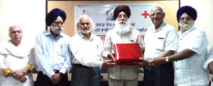 ਕੈਪਸ਼ਨ  :   ਮਾਨਵ ਸੇਵਾ ਦਿਵਸ ਮੌਕੇ ਪ੍ਰੋ: ਅਵਤਾਰ ਸਿੰਘ ਨੂੰ ਸਨਮਾਨਿਤ ਕਰਦੇ ਹੋਏ  ਬਲੱਡ ਬੈਂਕ ਫਗਵਾੜਾ ਦੇ ਮੈਂਬਰਾਨ।
